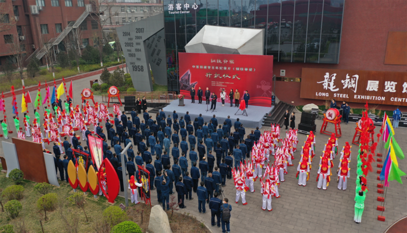 劉娜在儀式上宣布《鋼鐵脊梁》紀錄片正式開機,陳玉千、劉娜和楊海峰共同為《鋼鐵脊梁》紀錄片開機揭幕,與會人員還共同觀看了龍鋼公司龍門鋼鐵行鼓隊表演的威風鑼鼓。