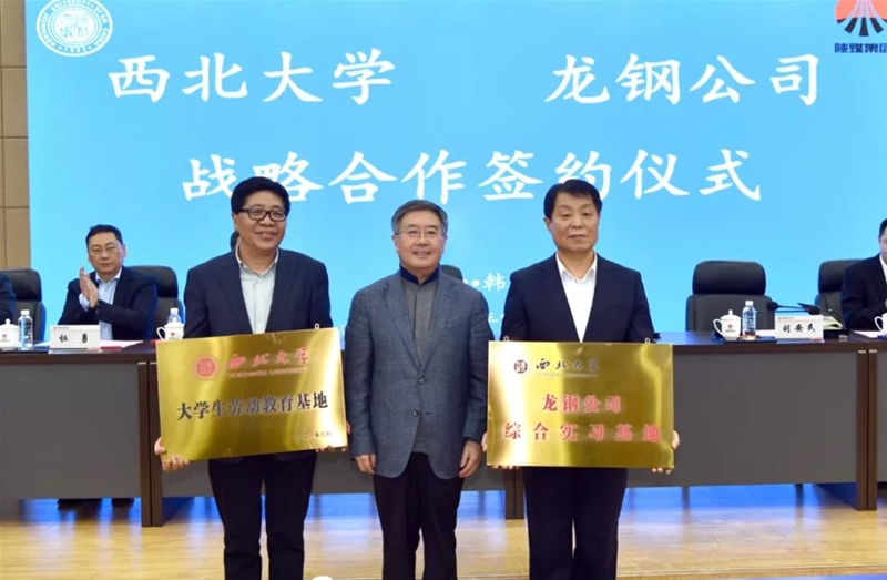 簽約儀式上,雙方簽訂了進一步深化校企戰(zhàn)略合作的框架協(xié)議。郗九生代表龍鋼公司向郭立宏頒發(fā)了聘任證書,聘任郭立宏校長為龍鋼公司管理顧問;郭立宏代表西北大學(xué)向龍鋼公司授發(fā)了“西北大學(xué)綜合實習基地”“西北大學(xué)大學(xué)生勞動教育基地”牌。