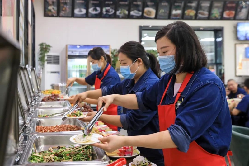 軋鋼廠工會抽調(diào)20名青年女工,在軋鋼職工餐廳分工協(xié)作,水果裝盤、月餅上桌,用細致周到的服務(wù)迎接前來就餐的職工,為讓不能前來餐廳就餐的職工共享美味,軋鋼廠工會還特別配置分裝飯盒,貼上祝福標語,將一份份美味的餃子、精致的果盤、月餅配餐到崗,讓全員都能感受到企業(yè)濃濃的節(jié)日氛圍。