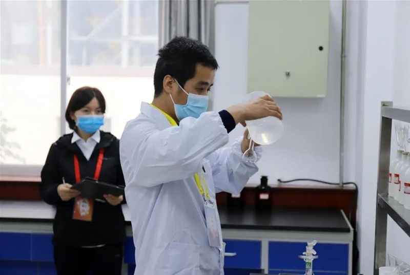 分析化驗工的實操考核內(nèi)容包括EDTA標準溶液的配制和生鐵酸溶硅含量測定兩部分。整個過程中,選手們注意力高度集中,操作細節(jié)不容許絲毫大意,準確的稱量、精確的藥品用量、嚴謹?shù)闹茦印⒎€(wěn)如泰山的移液……各顯身手,展絕技,亮絕活。