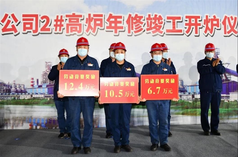 儀式前陳驍向主要生產(chǎn)單位發(fā)放了2021年12月份勞動(dòng)競賽獎(jiǎng)勵(lì)。龍鋼公司黨委副書記、總經(jīng)理李都宏在儀式上簡要介紹了2#高爐年修情況。