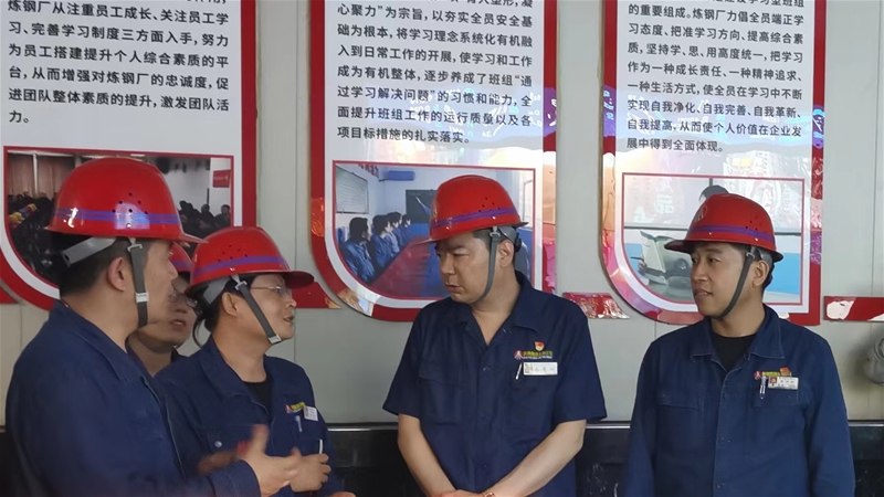 朱元洲一行先后深入煉鐵廠4#高爐值班室、修罐庫(kù)、信號(hào)樓以及煉鋼新區(qū),實(shí)地查看鐵水“一罐制”改造項(xiàng)目運(yùn)行情況,并與一線職工進(jìn)行溝通交流,對(duì)廣大干部職工戰(zhàn)高溫、斗酷暑、促生產(chǎn)、保質(zhì)量的高尚品質(zhì)給予高度贊揚(yáng)。
