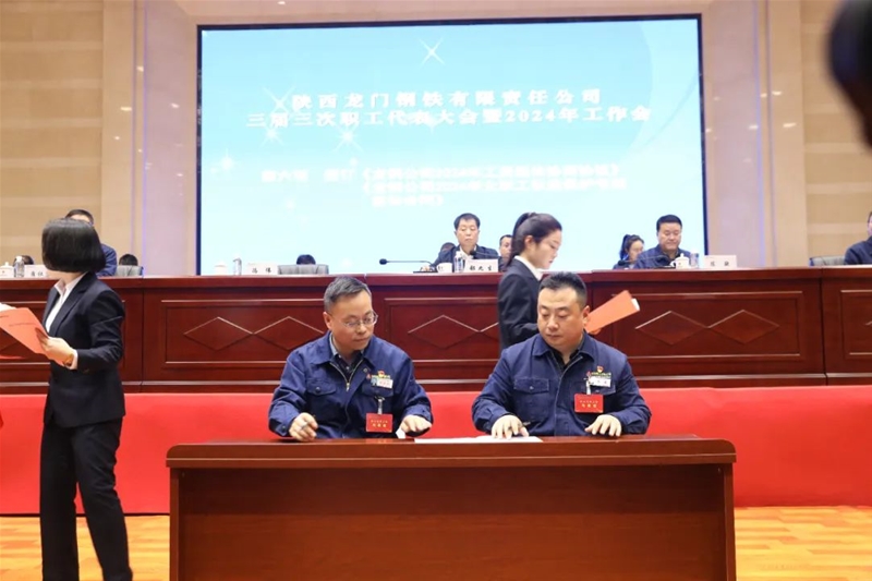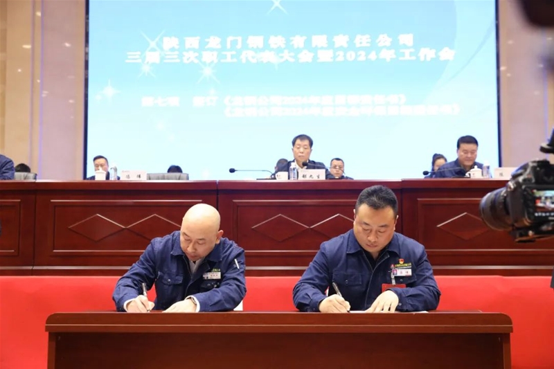 會上還傳達學習了陜煤集團、陜鋼集團三屆三次職代會暨2024年工作會精神,進行了民主評議領導干部。書面審議并通過了龍鋼公司《2023年經(jīng)營業(yè)績完成情況報告》《2023年安全環(huán)保目標責任完成情況報告》《2023年“三公經(jīng)費”支出情況報告》《2023年工資集體協(xié)商協(xié)議執(zhí)行情況報告》《三屆二次職代會提案落實情況及三屆三次職代會提案征集情況報告》《2024年工資集體協(xié)商協(xié)議(草案)》《2024年女職工權益保護專項集體合同(草案)》。