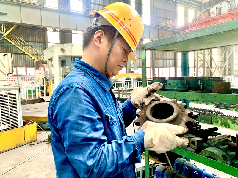 一次臨近下班,他又爬上原料行車例行設備檢查,發(fā)現(xiàn)原料行車車輪有裂痕并有異常響動,他立即上報并讓原料行車及時停運,隨即通知班組員工拿好工器具準備更換車輪,時間一分一秒過去,在眾人齊心協(xié)力下,一個半小時便完成了車輪更換作業(yè)。正是因為他高度的責任心,及時將隱患消除在萌芽狀態(tài),確保了設備安全高效運轉。