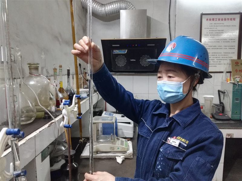 榮獲陜鋼“好媳婦”榮譽的黨朝陽平日既要照顧八十多歲的公公、婆婆,還得料理好自己的小家。但她的工作也干得有聲有色、毫不馬虎。這會她正在忙著化驗水質,剛接班,只見操作臺上擺滿了從轉爐、連鑄各個泵房取來的二冷水、結晶器水、除塵水水樣,她忙而不亂、井然有序地操作化驗器具,一會在濁度儀上監(jiān)測水質濁度,一會用酸度計測量PH值,一會又忙著測水中懸浮物、含油量、磷酸根……