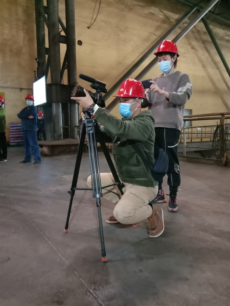 3月13日13:21,拍攝組在龍鋼公司煉鐵廠5#高爐進行專訪拍攝。