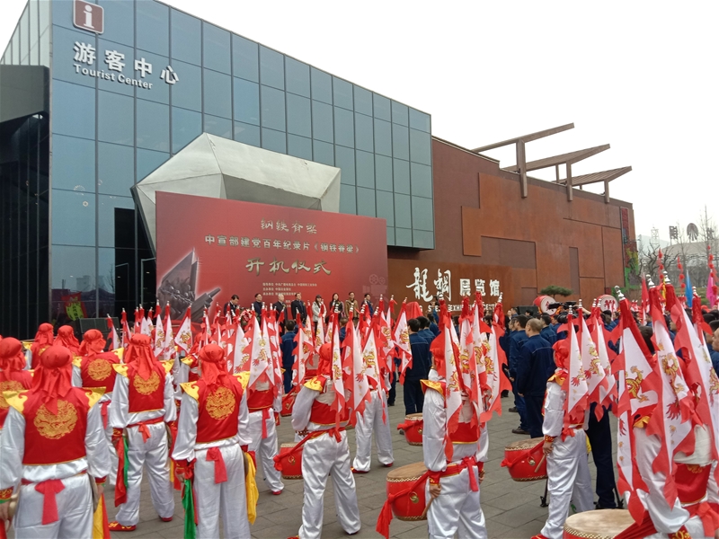 3月10日16:10,拍攝組在陜鋼集團龍鋼公司參加中宣部紀錄片《鋼鐵脊梁》開機儀式。