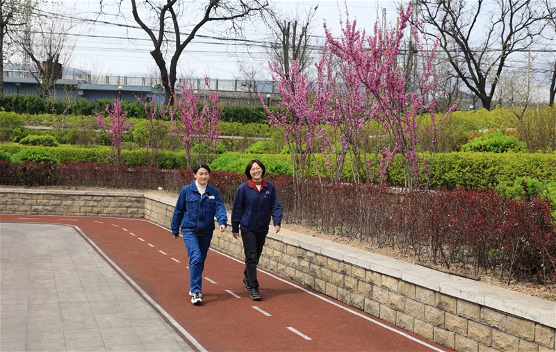 圖四:午后,職工們紛紛走出辦公室,活動(dòng)活動(dòng)筋骨,感受春日里的美好,享受運(yùn)動(dòng)帶來(lái)的快樂(lè)。