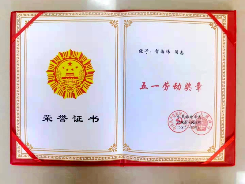 4月29日,韓城市召開慶祝“五一”國際勞動節(jié)暨先進表彰大會,公司賀海偉同志榮獲韓城市“五一勞動獎章”榮譽稱號,并現(xiàn)場發(fā)言。