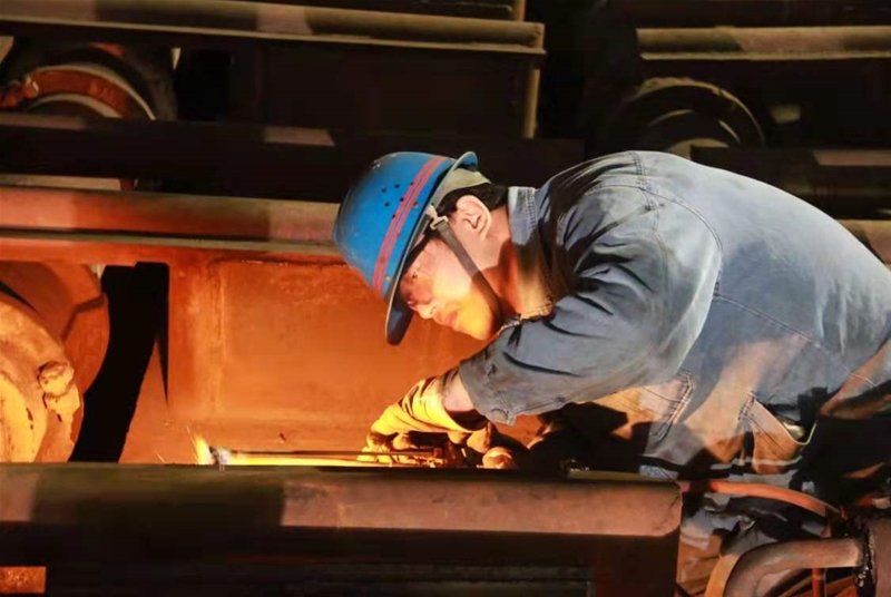 在3#轉(zhuǎn)爐爐下渣道,當(dāng)爐渣的余熱還充盈在爐下每一處時(shí),更換爐下軌道的檢修作業(yè)已經(jīng)開(kāi)始了。維修班長(zhǎng)徐永斌正帶著幾位工友在拆卸渣道軌道上的連接板,由于連接板螺栓上得緊,特別難拆,幾個(gè)人用專用工具,卡在螺栓上,咬緊牙關(guān),一毫米一毫米地拆卸著。在渣道的另一頭,維修主管趙雷和安全員高明生帶領(lǐng)人員正將新軌道一米一米抬過(guò)去。遠(yuǎn)遠(yuǎn)望去,那些“紅、黃、藍(lán)”分工協(xié)作,配合得天衣無(wú)縫。他們一個(gè)個(gè)臉上掛滿了汗珠,忍受著炙烤,但他們無(wú)暇理會(huì)這些,他們時(shí)刻在想著,在安全的保證下,一定要高效完成檢修任務(wù),交上一份滿意答卷。