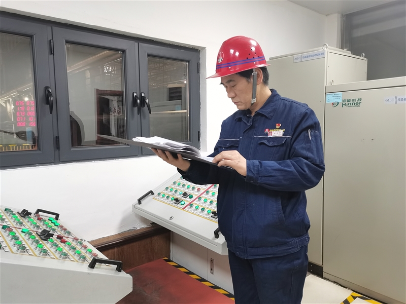 拉矯機處,兩名身著藍色工服的維修工正在商討工作方案。“把焊把和焊線給我,我從這里鉆過去把那個缺口補上。”只見黨員田凱從搭檔小張手里接過焊把和焊線,轉身就鉆進了二三流拉矯機中間。他半蹲在臺架上,焊接開裂的縫隙。在地處機坑里的拉矯機處,溫度要比平臺上的溫度高很多,可就在這錯綜復雜的區(qū)域,焊槍的火光頻頻閃現(xiàn)。