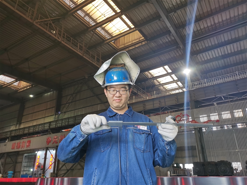 下午兩點半,筆者走進(jìn)熱浪滾滾的板鏈區(qū)域,只見身著厚重的工服,戴著隔熱面罩的趙宇輝正在俯身測量板材的厚度和寬度,他快速測量后,轉(zhuǎn)過身,背靠著火紅的板材,掀起面罩,準(zhǔn)確讀數(shù)后,顧不上喘口氣,便走進(jìn)值班室填寫記錄,碰上測量尺寸超差的,立刻用對講機(jī)聯(lián)系軋線主調(diào)整工進(jìn)行壓料或者放料操作,為確保成品質(zhì)量,他始終堅守在軋線最熱的地方。據(jù)了解,正常情況下半小時測量一次板材尺寸就可以,若遇到軋線頻繁換號,就要根據(jù)生產(chǎn)實際增加測量次數(shù),有時需要連續(xù)測量半小時以上。板鏈區(qū)域是板帶生產(chǎn)線溫度最高的地方,尤其到下午,熱浪襲來,烤得人異常難受,但即使這樣艱苦的工作環(huán)境,他依然無怨無悔堅守在生產(chǎn)一線,不懼“烤”驗戰(zhàn)高溫,以實干彰顯青年擔(dān)當(dāng)。