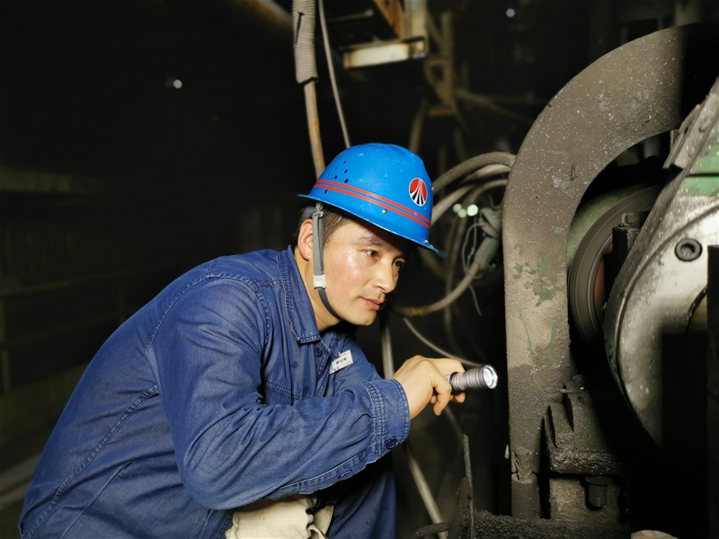 圖十:煉鋼廠連二作業(yè)區(qū)安檢員郭云峰正在對(duì)連鑄振動(dòng)系統(tǒng)進(jìn)行點(diǎn)檢。大負(fù)荷照明燈的強(qiáng)光打在他的臉龐上,他一個(gè)點(diǎn)一個(gè)點(diǎn)地仔細(xì)檢查著,一顆顆滾落的汗珠里,包裹的都是他對(duì)設(shè)備的精心。