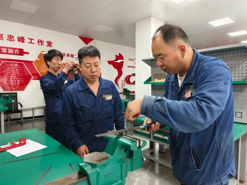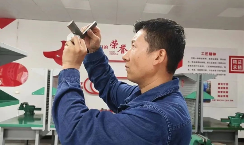 “此次比賽大家在打磨過(guò)程中一定要精準(zhǔn)計(jì)算,將誤差降低在正負(fù)0.1mm之間……”在“操檢合一”鉗工技術(shù)比武現(xiàn)場(chǎng),評(píng)委趙忠峰正為學(xué)員現(xiàn)場(chǎng)講解比賽要領(lǐng)。