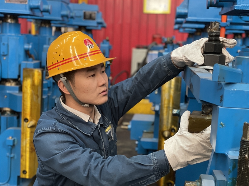 日常工作中,愛(ài)琢磨、勤動(dòng)手不僅讓解冬練就了一身修舊本領(lǐng),對(duì)于設(shè)備隱蔽部位消漏他更是“有一套”?,F(xiàn)場(chǎng)設(shè)備“跑冒滴漏”治理一直都是設(shè)備維護(hù)的重點(diǎn),他所負(fù)責(zé)的液壓油站更是重中之重,一旦發(fā)生故障,影響軋機(jī)裝配進(jìn)度。由于液壓站液壓管路在各機(jī)械手坑內(nèi)布置錯(cuò)綜復(fù)雜,出現(xiàn)漏點(diǎn)人員不能及時(shí)發(fā)現(xiàn),加之設(shè)備每天在高頻次的使用中管路震動(dòng),導(dǎo)致漏點(diǎn)很難處理。他憑借豐富的經(jīng)驗(yàn),創(chuàng)新思路,大膽設(shè)計(jì),使用高壓軟管代替不銹鋼原有管路。思路有了,說(shuō)干就干,從設(shè)計(jì)出圖到管路安裝,他全程參與。改造后的管路橫平豎直,不僅減少了油站故障,而且杜絕了高頻次震動(dòng)造成漏點(diǎn)難徹底的難題,從根源上解決了設(shè)備“跑冒滴漏”問(wèn)題。