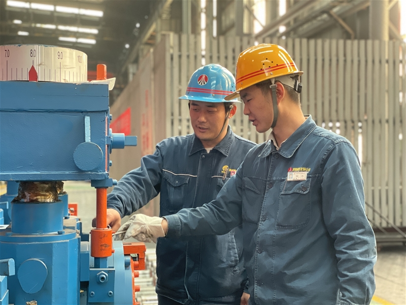 近期,員工反映棒三軋機(jī)壓下連接裝置容易出現(xiàn)銹蝕狀況,導(dǎo)致壓下螺栓緊固后,軋機(jī)傳動(dòng)端上輥軸承座與軋輥配合間隙小,容易造成軋機(jī)上輥密封與軋輥內(nèi)套摩擦燒損現(xiàn)場(chǎng),影響生產(chǎn)。解冬見狀,思量著“現(xiàn)在公司形勢(shì)這么嚴(yán)峻,購(gòu)買一批備件又是一大筆開銷,不如自制一批備件先解決燃眉之急。”他一邊說(shuō),一邊到現(xiàn)場(chǎng)尋找廢舊備件進(jìn)行測(cè)量。經(jīng)過(guò)一番研究后,他設(shè)計(jì)好圖紙,就地取材收集厚壁鋼管,與機(jī)加工確定加工方案、工藝要求后,立即制作起來(lái)。鉆孔、打磨、焊接、車削,一套程序下來(lái),一批壓下連接裝置制作成功。經(jīng)試用,自制的壓下連接裝置不僅符合要求,而且有效解決了軋機(jī)傳動(dòng)端密封燒損現(xiàn)象,提高了小時(shí)過(guò)鋼量,年節(jié)約備件費(fèi)用12萬(wàn)元。