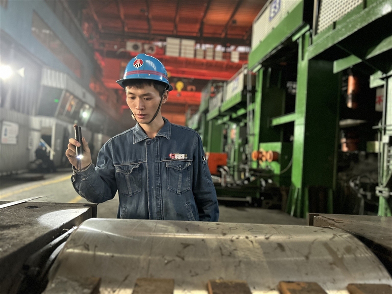 他不僅具備扎實(shí)的專業(yè)能力,還勇于擔(dān)當(dāng)。檢修期間,他堅(jiān)守現(xiàn)場(chǎng),化身兼職安全員,不論是嚴(yán)寒,在空曠寒冷的板鏈作業(yè)現(xiàn)場(chǎng),還是酷暑,在昏暗悶熱的加熱爐清渣作業(yè),只要作業(yè)不完成,他就堅(jiān)守在現(xiàn)場(chǎng),用心用情為安全檢修“保駕護(hù)航”。正是因?yàn)樗恼J(rèn)真負(fù)責(zé),多次被評(píng)為板帶作業(yè)區(qū)“優(yōu)秀監(jiān)護(hù)人”。除此之外,他還不斷鉆研,積極參與軋線導(dǎo)衛(wèi)、換輥小車等改造項(xiàng)目,中廢、成材率等指標(biāo)攻關(guān)工作,成功解決了多個(gè)技術(shù)難題,為生產(chǎn)穩(wěn)定順行貢獻(xiàn)了青春力量。