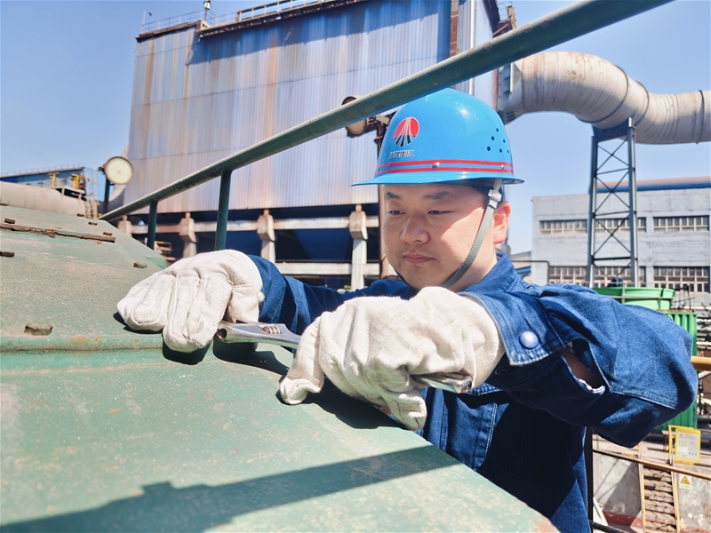 “再將這顆螺絲往前擰一圈剛好卡住,減速機運行才能減少震動……”設備點檢員薛濤一邊操作著一邊給一旁的工友講道。他們協(xié)同作戰(zhàn),認真檢查,嚴格排查每一個環(huán)節(jié),確保檢修任務圓滿收官。