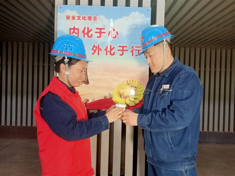 為保證檢修人員在第一時間喝到解渴的綠豆湯,志愿者們提前將保溫桶分點搬至檢修現(xiàn)場,將熬好的綠豆湯晾置溫涼后,送到檢修人員手中,讓參檢人員心暖、勁更足。