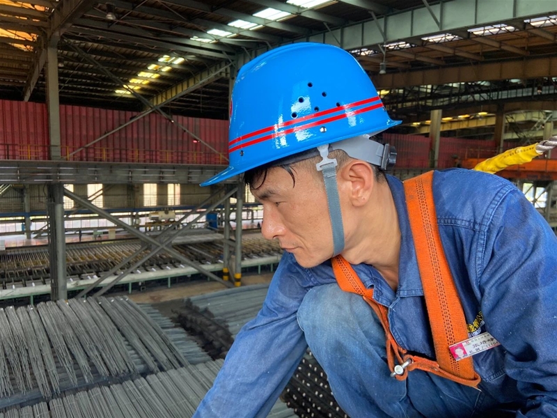 走進(jìn)軋鋼生產(chǎn)線,一股熱浪迎面而來。距離軋線20米的高空,剛剛完成車輛點檢的趙正正駕駛天車忙碌地進(jìn)行鋼坯入庫工作,起吊、穩(wěn)鉤、下落動作一氣呵成,嫻熟而輕巧,在進(jìn)行鋼坯碼垛作業(yè)時,他不到10分鐘便完成一車原料的吊運(yùn)擺放。每次鋼坯碼垛,他都提前測算出前后左右距離,精確放置,將軍營中疊“豆腐塊”的嚴(yán)謹(jǐn)精神傳承到崗位工作中。經(jīng)他擺放的鋼坯垛位總是方方正正、橫平豎直,令人眼前一亮。炙烤的環(huán)境,絲毫沒有影響到他。趙正沉著冷靜,爭分奪秒對車輛進(jìn)行點檢、維護(hù),往往調(diào)整一個制動器下來,就已經(jīng)汗流浹背。而他認(rèn)真堅定的目光,是對崗位最滾燙的熱愛。