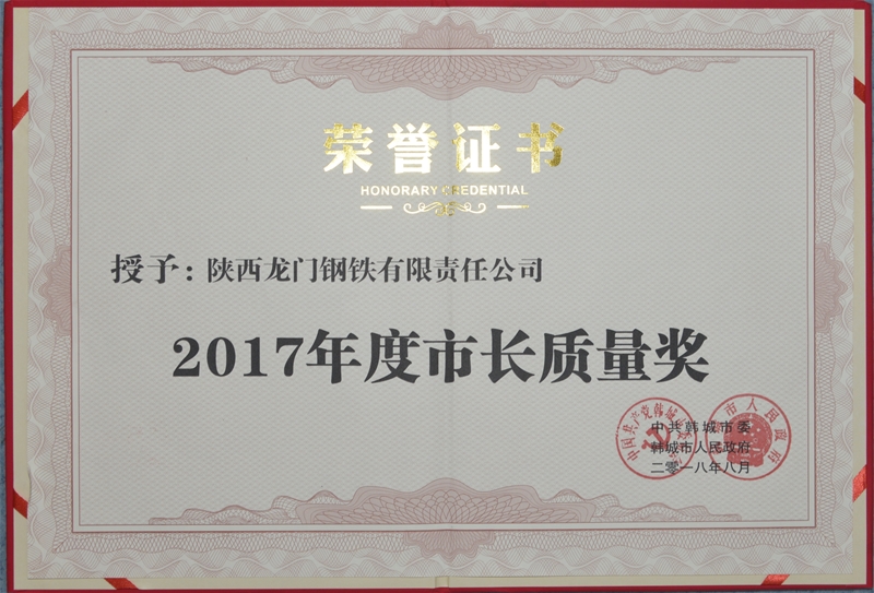 市長(zhǎng)質(zhì)量獎(jiǎng)證書 陜西省質(zhì)量標(biāo)桿獎(jiǎng)牌