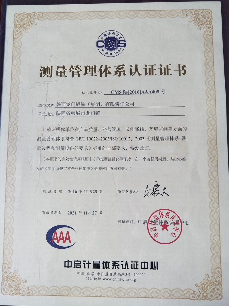 龍鋼公司于2002年初建立了計(jì)量檢測體系,2007年依據(jù)ISO10012-2003標(biāo)準(zhǔn)進(jìn)一步修改和完善公司計(jì)量檢測體系,增加了測量過程控制要求,建立了測量管理體系,并于2007年12月首次通過中啟計(jì)量認(rèn)證的現(xiàn)場審核,取得“AAA”級(jí)測量管理體系認(rèn)證證書。累年來,通過測量管理體系的有效運(yùn)行和監(jiān)督審核工作的認(rèn)真開展實(shí)施,公司測量管理體系得到了不斷改進(jìn)和完善,在企業(yè)的工藝監(jiān)測、質(zhì)量控制、成本管理、環(huán)境監(jiān)測方面發(fā)揮著不可替代的計(jì)量保證作用。