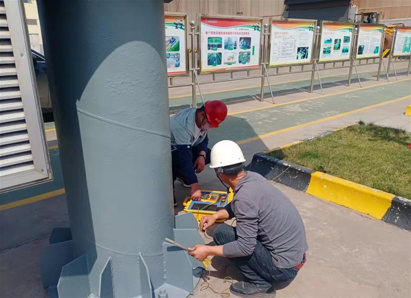 為切實(shí)加強(qiáng)夏季防雷工作,保障人員和設(shè)備設(shè)施安全,截至5月底,韓城市防雷中心專業(yè)人員完成了對公司所轄區(qū)域生活區(qū)、廠區(qū)所有建構(gòu)筑物及廠房、易燃易爆區(qū)域共1071處防雷防靜電點(diǎn)的專項(xiàng)安全檢測。
