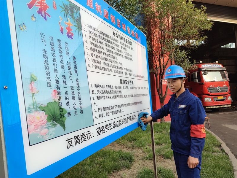 在原料作業(yè)區(qū)廢鋼大倉前,廢鋼工王少博正忙碌著,別看他年紀(jì)輕、體格瘦,但提起他的名字,周圍的工友們都豎起大拇指。他每天從接班開始,便仔細(xì)排查了解現(xiàn)場物料堆放情況,把各類物料的具體位置熟記于心,做到心中有數(shù)。為保證入庫、入爐廢鋼質(zhì)量、安全達(dá)標(biāo),王少博對入庫廢鋼的質(zhì)量進(jìn)行嚴(yán)格驗收把關(guān),在廢鋼卸車、配斗過程中全程監(jiān)護(hù)檢查,對于不合格的物料一律“拒之門外”。