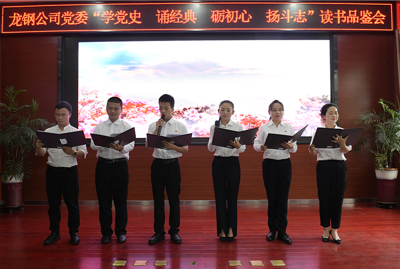 此次讀書(shū)品鑒會(huì)以“學(xué)黨史 誦經(jīng)典 礪初心 揚(yáng)斗志”為主題,創(chuàng)新黨史學(xué)習(xí)方式,以中國(guó)共產(chǎn)黨百年奮斗歷程為軸線,分為開(kāi)天辟地(《紅船,從南湖起航》)、艱苦奮斗(《沁園春·雪》《七律·長(zhǎng)征》)、崢嶸歲月(《回延安》《黨旗頌》)、百年風(fēng)華(《黨啊,我的母親》《盛世中國(guó)》《永遠(yuǎn)跟黨走》)四個(gè)篇章,以誦讀詩(shī)詞經(jīng)典的形式,全過(guò)程、全景式、史詩(shī)般展現(xiàn)了中國(guó)共產(chǎn)黨波瀾壯闊的百年歷程,環(huán)環(huán)相扣、由遠(yuǎn)及近,層層深入,為全員奉上了一次形象生動(dòng)的黨史學(xué)習(xí)大餐,將豐富的黨史知識(shí)轉(zhuǎn)化為助推龍鋼高質(zhì)量發(fā)展的磅礴力量。