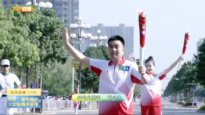 陜鋼集團(tuán)形象代言人、陜鋼集團(tuán)工會(huì)副主席、龍鋼公司煉鋼廠主任技師薛小永作為韓城站第55號(hào)火炬手,在韓城市礦馨園小區(qū)東南側(cè)與復(fù)興路十字北路段進(jìn)行了火炬?zhèn)鬟f。