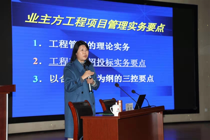 此次培訓(xùn)特邀西安科技大學(xué)工程管理信息化研究所主任、中國建筑學(xué)會工程管理研究分會理事曹萍教授授課。她主要圍繞工程管理的理論實務(wù)、工程項目招投標(biāo)實務(wù)要點、合同管理要點分析、BIM工程實際應(yīng)用四方面內(nèi)容進行培訓(xùn),重點聚焦全過程工程咨詢實現(xiàn)投資項目的全生命周期管理,全面改善投資決策、設(shè)計、勘察、監(jiān)理、咨詢、造價、招標(biāo)和施工環(huán)節(jié)的工作質(zhì)量,利用BIM模型和進度計劃軟件的數(shù)據(jù)集成,實時監(jiān)控工程進度,調(diào)整對環(huán)境的影響等,從而實現(xiàn)全面系統(tǒng)的可建性模擬分析,促使實現(xiàn)更加節(jié)能、更加經(jīng)濟、更加綠色的設(shè)計,大幅度縮短施工工期,降低成本,提高利潤,更有效地提高工作效率、控制造價,達到建設(shè)到位和施工到位的效果。