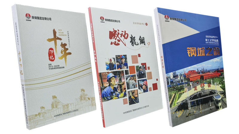 《感動(dòng)龍鋼》文化叢書(shū)匯集了五屆“感動(dòng)龍鋼”人物的先進(jìn)事跡,激勵(lì)干部職工以榜樣為導(dǎo)向,以先進(jìn)為追求,在新的征程上勇毅前行,挺起龍鋼奮斗不息的“鋼鐵脊梁”?!朵摮侵崱肥抢^《鋼花》之后,公司第二部職工文學(xué)作品集,分為《鋼城·情歌》《鋼城·抒懷》《生活·經(jīng)事》《星耀·鋼城》四個(gè)篇章,收錄職工文學(xué)作品120篇。廣大文藝愛(ài)好者,從身邊亮點(diǎn)和生產(chǎn)一線(xiàn)擷取素材,熱情謳歌黨、謳歌祖國(guó)、謳歌新時(shí)代、謳歌龍鋼的發(fā)展成就,展現(xiàn)了新時(shí)代龍鋼人激情昂揚(yáng)的精神面貌?!妒暧∮洝肥珍浟斯臼陙?lái)在各類(lèi)主流媒體刊登的重要新聞報(bào)道500篇,展示了公司在各方面工作中的新作為、新成就、新經(jīng)驗(yàn),反映了一線(xiàn)職工的精氣神,講述了龍鋼取得的歷史成就和巨大變化,成為企業(yè)的一部“史記”。