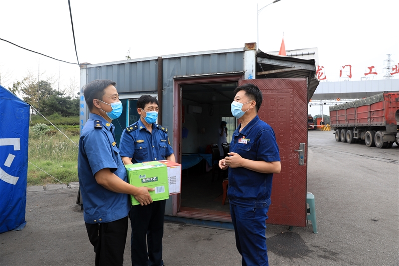 8月10日,公司黨委委員、工會主席趙春棠帶領工會辦公室一行到工業(yè)園區(qū)高速路口慰問堅守在防疫戰(zhàn)線上的工作人員,為他們送去礦泉水、方便面、飲料等慰問品以及企業(yè)大家庭的關愛和溫暖。