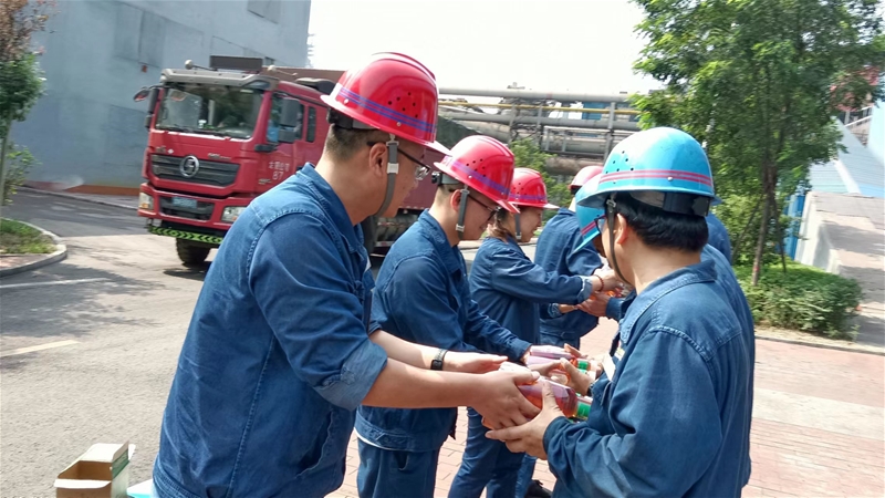 “快看,工會(huì)的同志又來送清涼了。”“好的,你先招呼停車,我這就去喊人。”這是8月2日,公司工會(huì)“送清涼”時(shí),兩名一線員工交談的一幕。