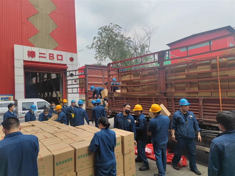 發(fā)放現(xiàn)場氣氛熱烈,大家配合默契,各負其責,喜悅之情溢于言表,員工歸屬感和獲得感不斷增強。當大家接過一箱箱產(chǎn)品時,內(nèi)心深深地感受到公司黨政的關(guān)愛和溫暖。并紛紛表示,感謝公司的關(guān)懷,將立足崗位、苦干實干,堅決打贏降本增效攻堅戰(zhàn),為公司高質(zhì)量發(fā)展貢獻力量。