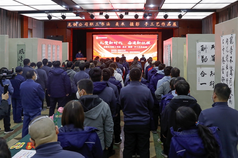 薛社康致辭。他表示,此次書法、美術(shù)、攝影、手工藝作品展中,所有作品均是一線干部職工的最新力作。他們通過光影藝術(shù)、筆墨抒情,展現(xiàn)了近三年來公司上下一心,“重整行裝再出發(fā) 浴火重生開新局”的鏗鏘步伐,謳歌了龍鋼工匠、勞動模范等先進(jìn)典型,展現(xiàn)了廣大干部職工積極投身企業(yè)生產(chǎn)一線的火熱場景和歷史記憶。同時也為廣大書畫、攝影愛好者提供了一個發(fā)現(xiàn)自我、充實自我、展現(xiàn)自我的舞臺,引導(dǎo)全體干部職工從黨的故事、革命的故事、龍鋼的故事中,堅定理想信念,汲取奮進(jìn)力量。希望廣大干部職工以此次活動為契機(jī),追憶初心故事、傳承紅色基因,在黨的二十大精神指引下,堅定不移跟黨走、團(tuán)結(jié)奮進(jìn)新征程,在藝術(shù)創(chuàng)作和工作生活中,弘揚偉大建黨精神,自信自強(qiáng)、守正創(chuàng)新,踔厲奮發(fā)、勇毅前行,為企業(yè)高質(zhì)量發(fā)展作出新的更大的貢獻(xiàn)。