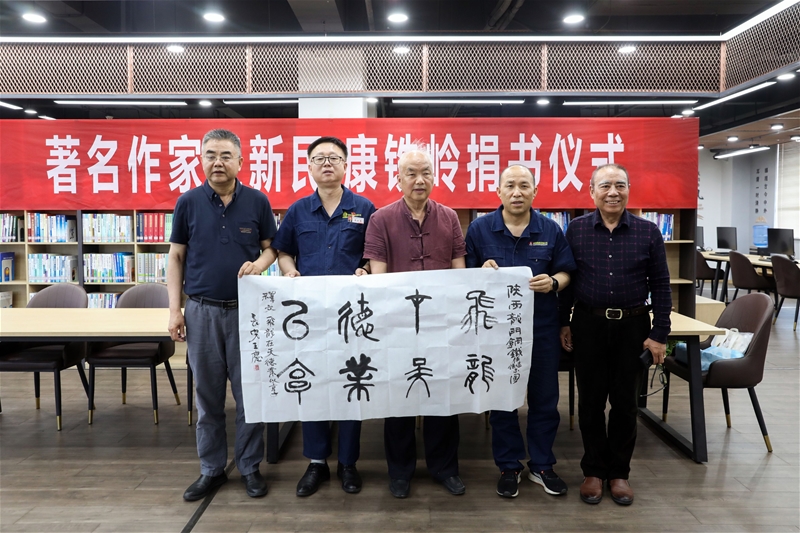 儀式上,王新民為公司捐贈了散文集《行余集》《賈平凹紀事》《春華秋實》等文學作品10冊,康鐵嶺捐贈了長篇小說《書院門1991》4套。同時,王慶捐贈了《飛龍在天 德業(yè)以享》書法作品。