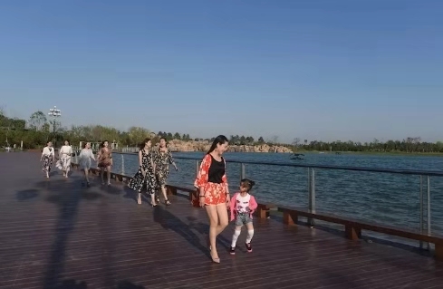 湖堤上,有幼兒牽著媽媽的手,姍姍學步;有情侶手拉著手,走著笑著;有年長者推著輪椅,載著老伴,緩緩前行……湖邊小廣場上,忽聽得鼓樂聲響起。那是來湖邊休閑的市民和游客們正在欣賞著自樂班的秦腔表演,動情處,掌聲雷動,喝彩聲不斷。恬靜而不失動感,靈秀中透出質樸,顯現了北方地域的獨特景致,動靜交融,渾然一體。
