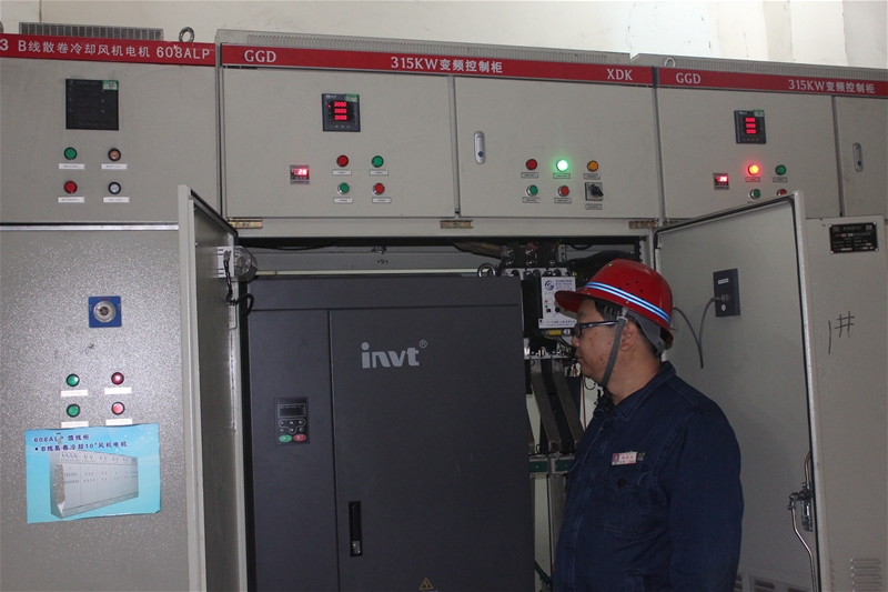 項目簡介:原高線散冷風機共有4臺315KW變頻電機,長期運行,電流550A,4臺風機小時耗電1130度,由于變頻器不能頻繁啟停,操作工根據(jù)現(xiàn)場不生產(chǎn)時由人工降頻運行,由于人為原因,降頻不能及時,導致電能浪費。解決方案:編制自動判斷程序,當PLC系統(tǒng)判斷吐絲機無鋼延時3分鐘后自動降頻到20HZ,以實現(xiàn)降頻節(jié)能的目的。當系統(tǒng)判斷軋線有鋼后自動恢復(fù)原設(shè)定轉(zhuǎn)速以滿足生產(chǎn)需要。年節(jié)能效益達26萬元。