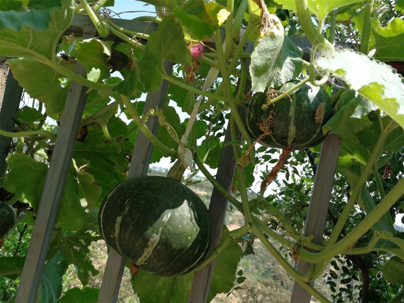 來到家里的后院,剛跨過后院門就看到爺爺種的各種花草,在遠一些是這個季節(jié)的蔬菜。從記事起爺爺就愛種花草,今年也一樣,葫蘆藤上結滿了小葫蘆,隨風擺動,就像是一群葫蘆娃在向我打招呼,情不自禁的摘下一個洗了洗讓孩子玩。記得小時候自己偷偷的摘了個葫蘆去和同伴們玩,回來讓爺爺一頓好罵。后院的大部分地方爺爺都種上了菜,大片的辣椒,幾個黃瓜騰,西紅柿,茄子和豆角……看著這些新鮮綠色的食材我覺得我胃口大開。
